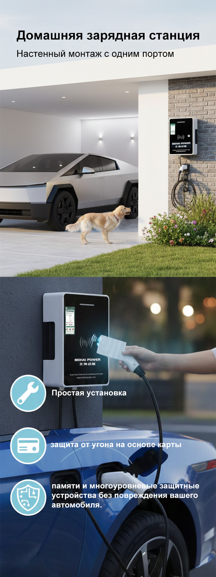 Зарядное устройство для электромобилей OEM с разъемом типа 2 С одним пистолетом, Настенное Зарядное устройство переменного тока мощностью 7 кВт